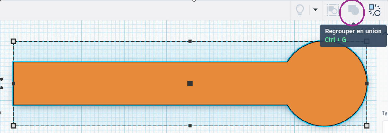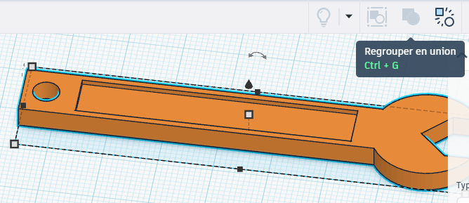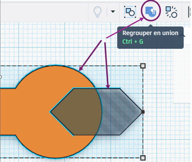 - Sélectionnez les deux pièces (MAJ+Clic). On peut maintenant les “regrouper” afin que les deux formes fusionnent.