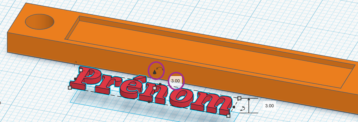 - Passons maintenant à un peu de personnalisation. Ajoutez du “texte”, que vous trouverez dans “forme simple” également. Ajustez sa taille, épaisseur 1 mm et surélevez le de 3mm.