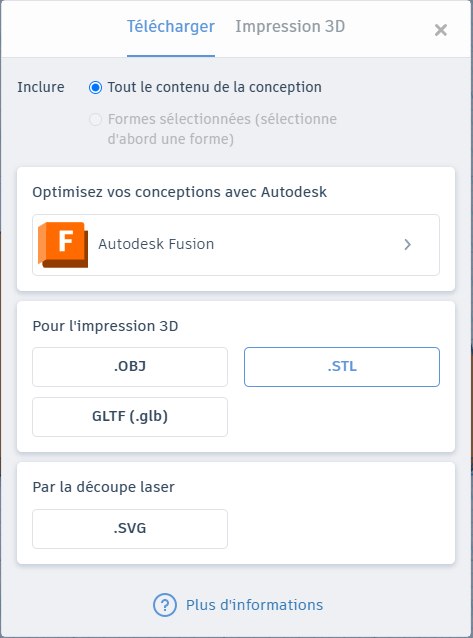 - Lorsque le professeur a validé vous pouvez exporter l'objet que vous avez créé en format .STL
