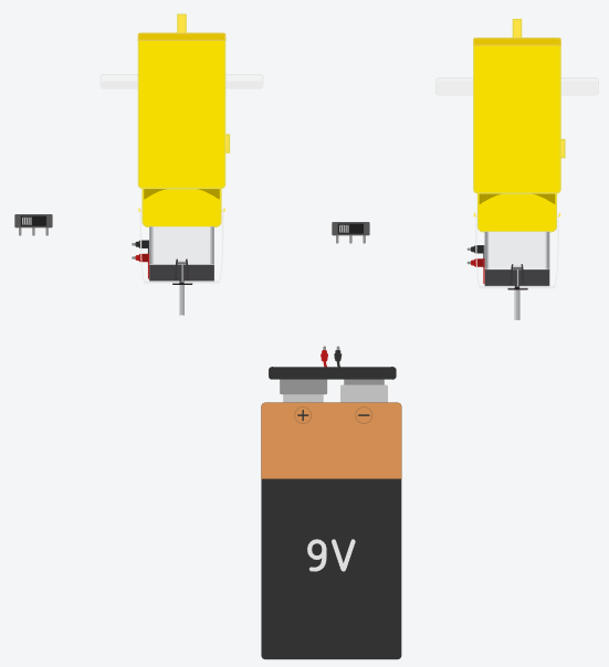 Circuit n°3: Piloter les moteurs d'un robot avec deux interrupteurs, le robot peut avancer tout droit, tourner à gauche ou tourner à droite.