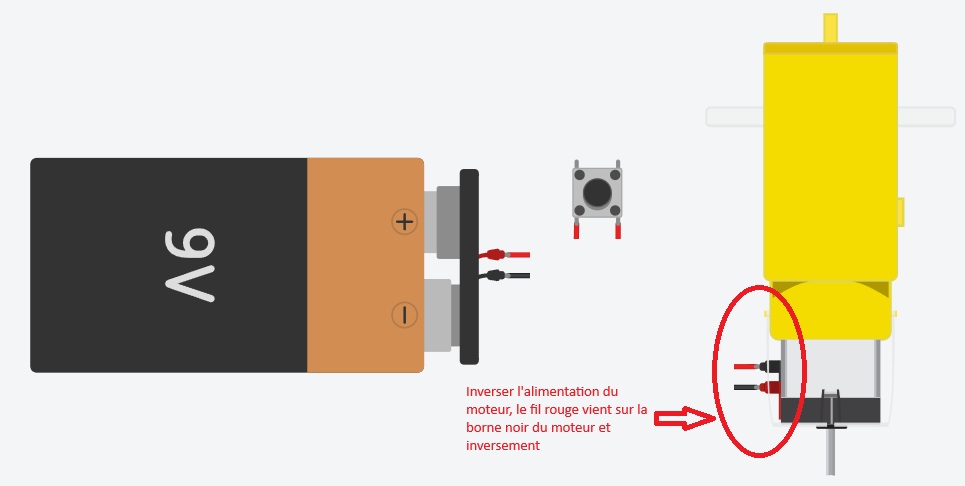 Circuit n°2: Même montage que le circuit n°1 mais inverser le sens d'alimentation du moteur