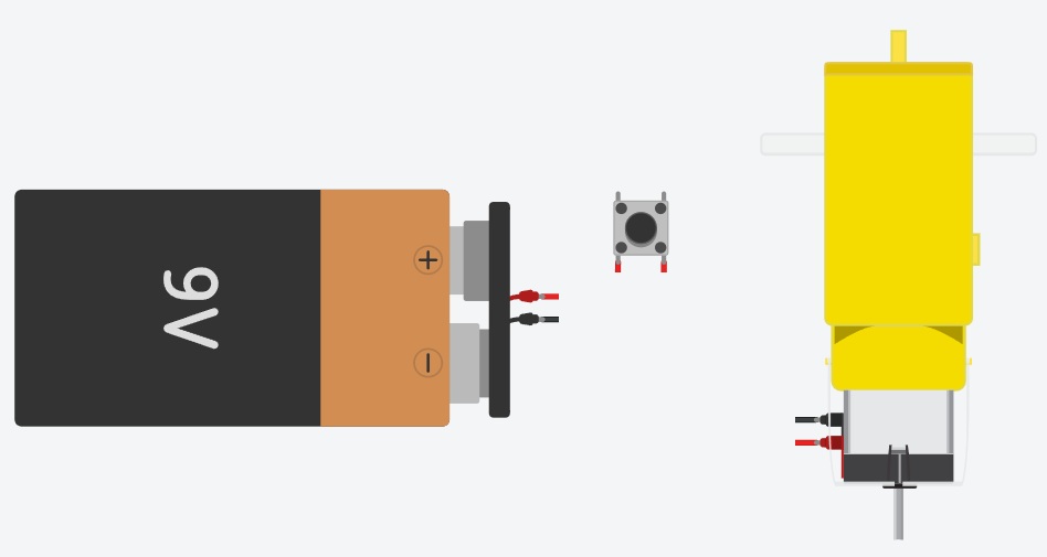 Circuit n°1: Alimenter un moteur électrique en appuyant sur un bouton poussoir Respecter la couleur des fils et des branchements, les fils rouges relient les bornes rouges, les fils noirs les bornes noires