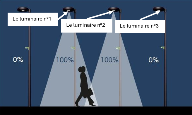 - Même principe, le luminaire n°2 communique au bout de 2s l'allumage du luminaire n°3.