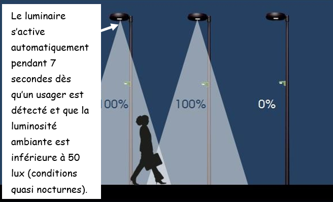 - La LED s’allume-t-elle si la luminosité est inférieure à 50 lux et qu’un usager est détecté?