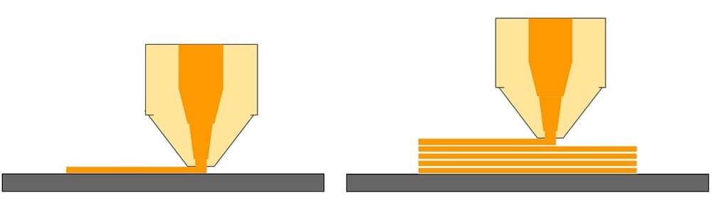 L’imprimante dépose ce plastique exactement à l’endroit prévu, puis :
