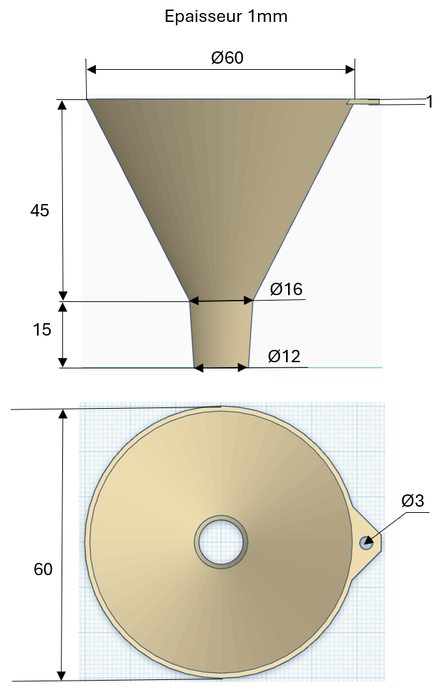 En physique, en 6e et 5e vous avez utilisé des entonnoirs. Certains sont dégradés. A vous de modéliser un entonnoir en respectant les cotes ci-dessous.