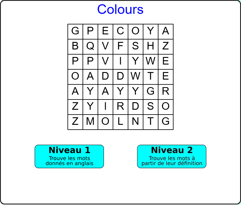 - Mots mêlés: Les couleurs